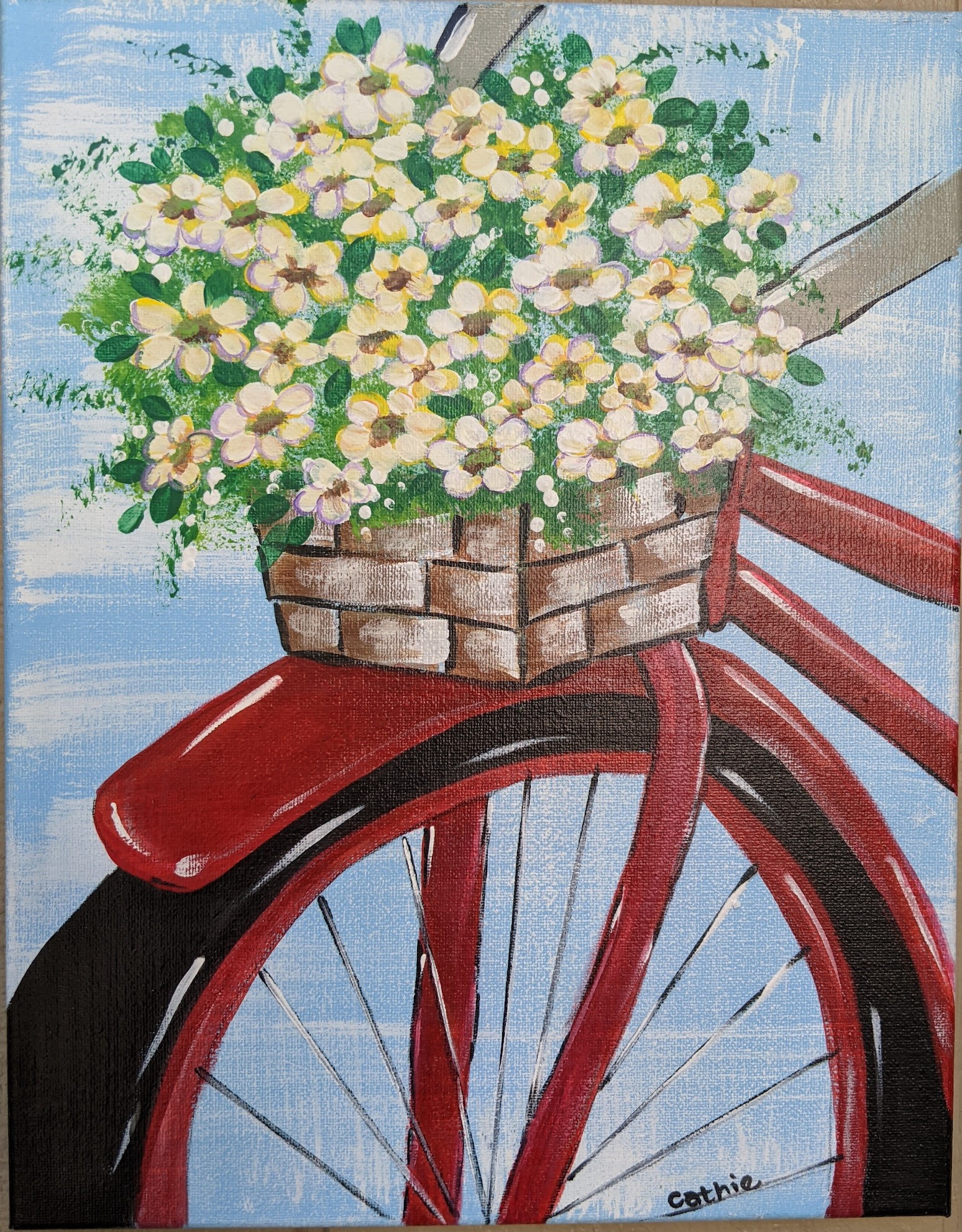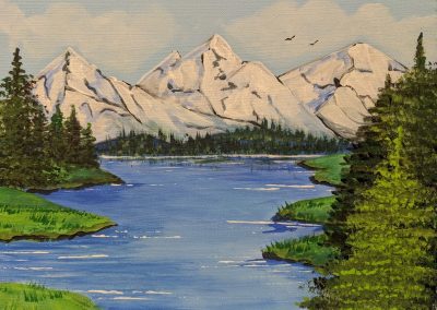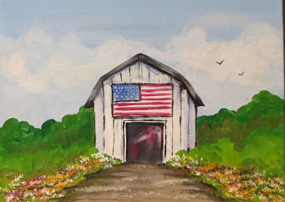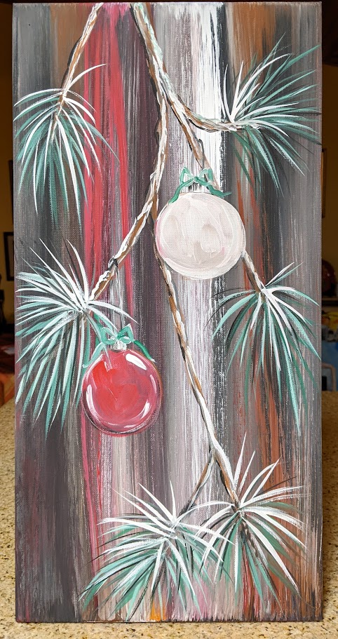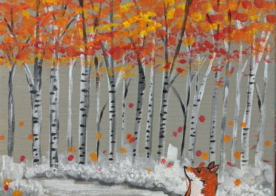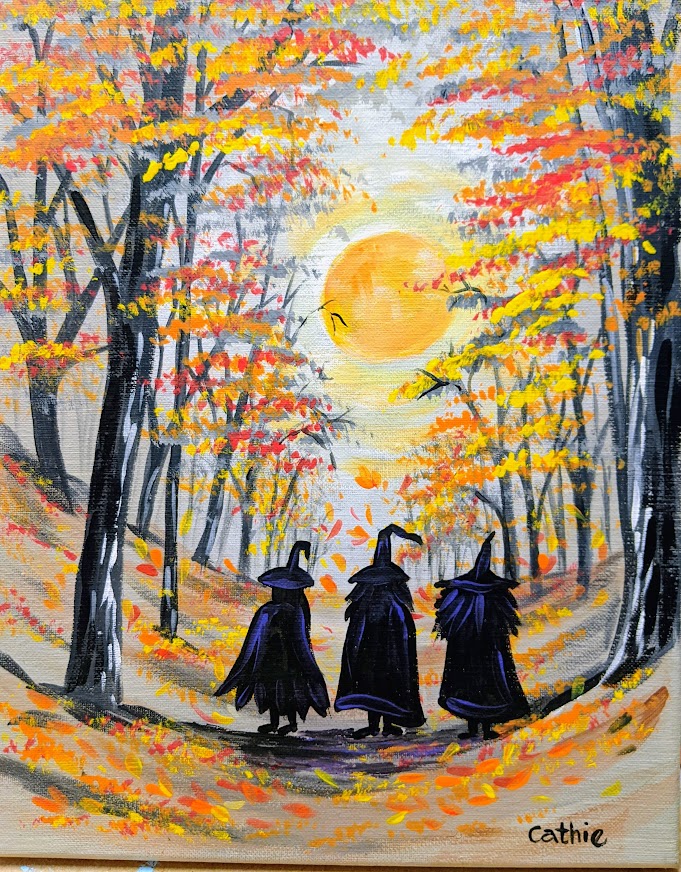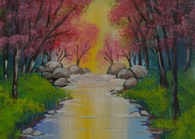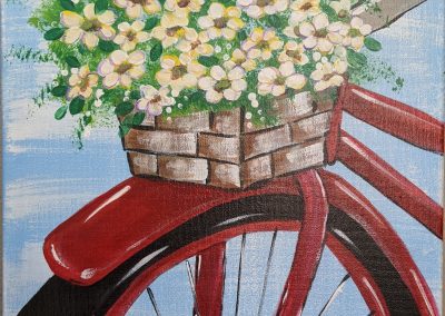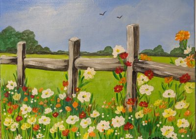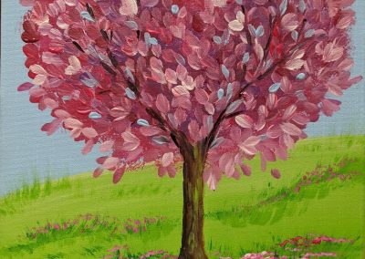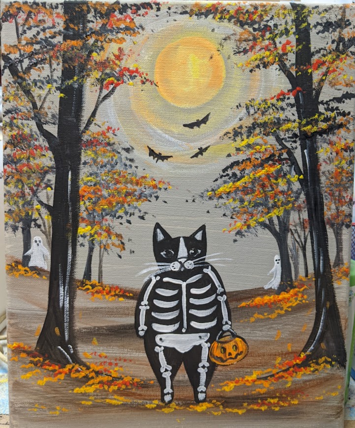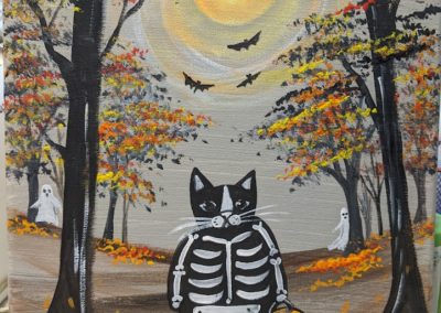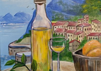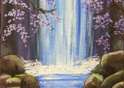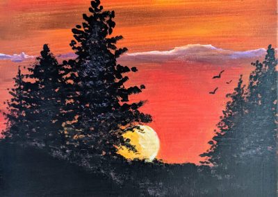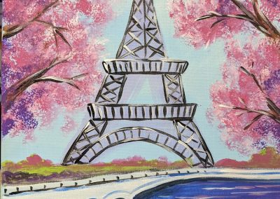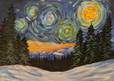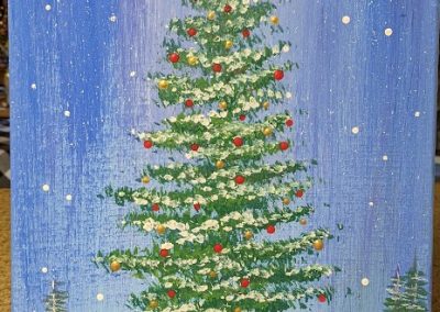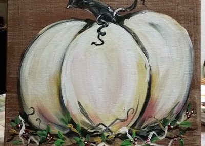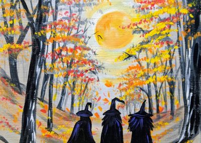 The class takes about three hours and includes all supplies needed to complete your 11″ x 14″ canvas painting.