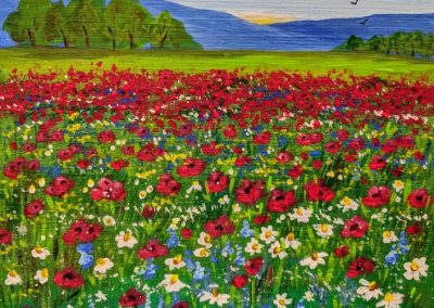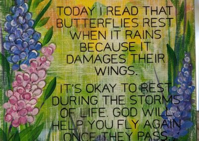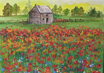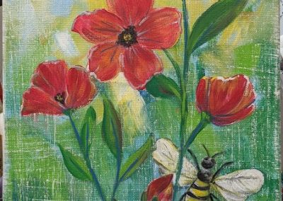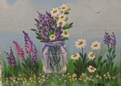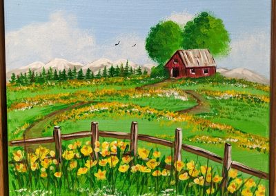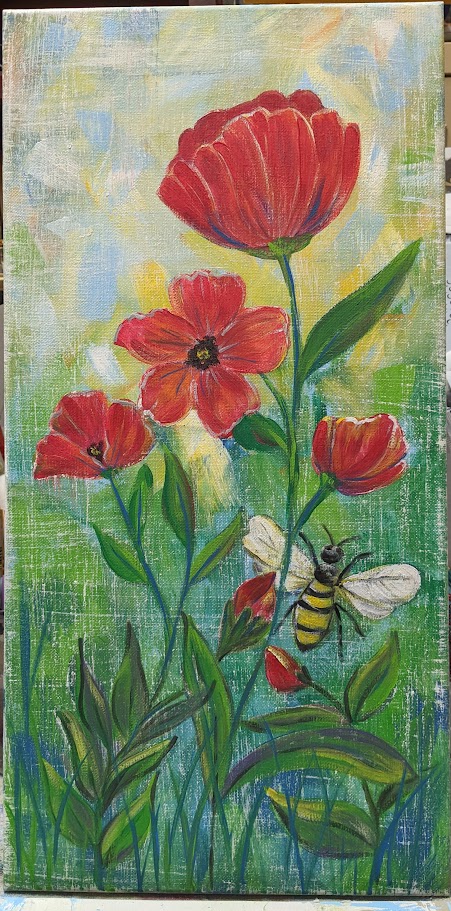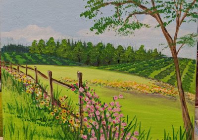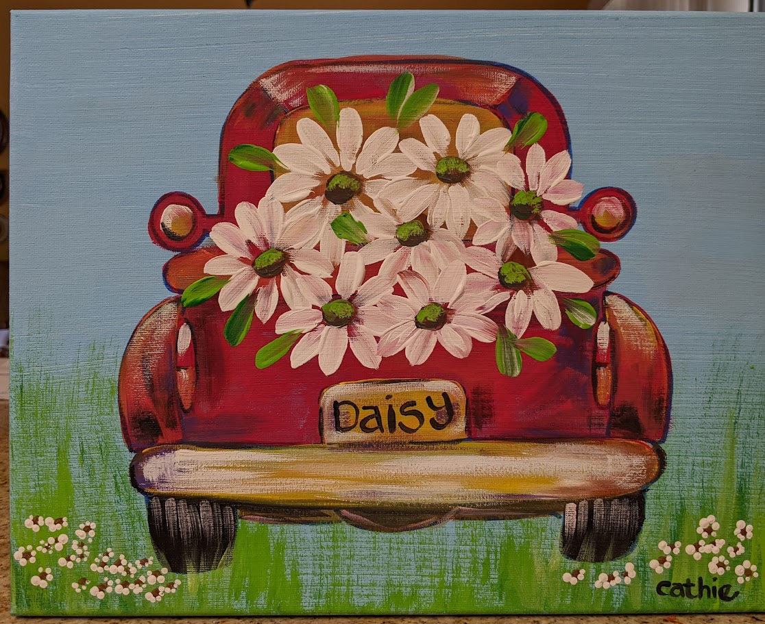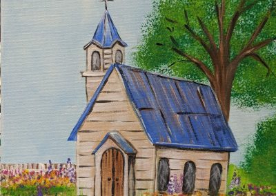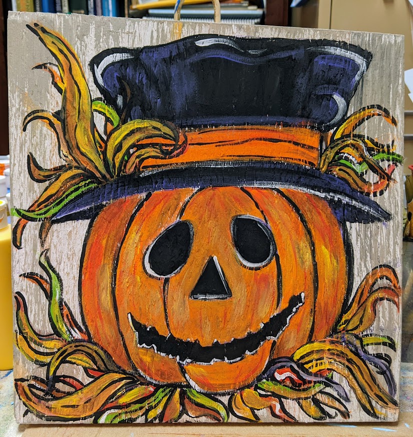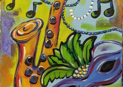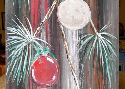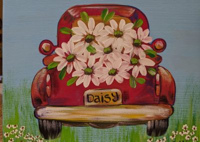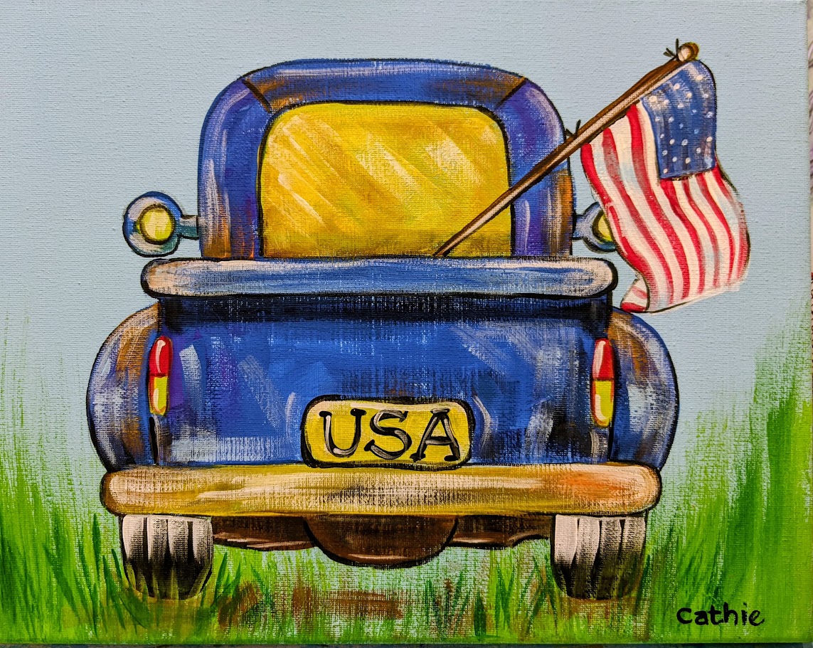 The class takes about three hours and includes all supplies needed to complete your 11″ x 14″ canvas painting.