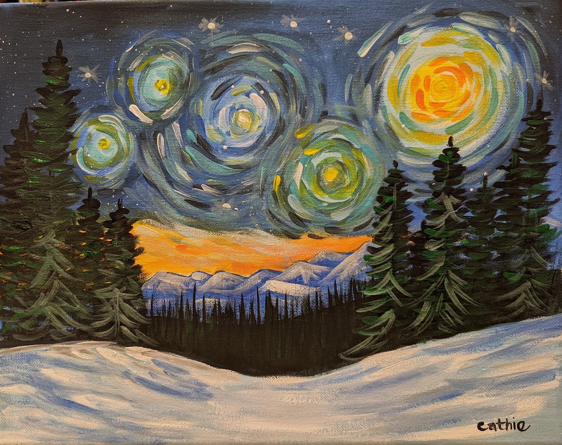 One hour before the class is needed for Cathie’s Paint Parties to ‘set up’ the space.